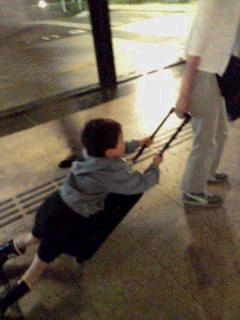 課長に新幹線のおもちゃを買ってもらって超ゴキゲンのたーちゃんと、この時既に足が痛かった私。旅はスニーカーですね。